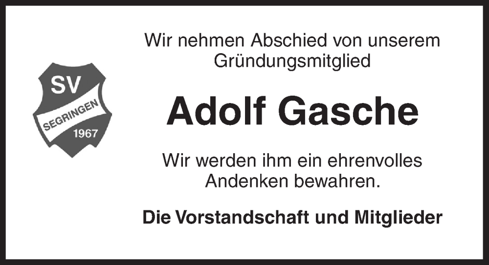 Hier finden Sie alle Traueranzeigen aus der Zeitung, die bisher für Adolf Gasche erschienen sind. Weitere Traueranzeigen, die in der Zeitung erscheinen, werden hier ebenfalls aufgelistet