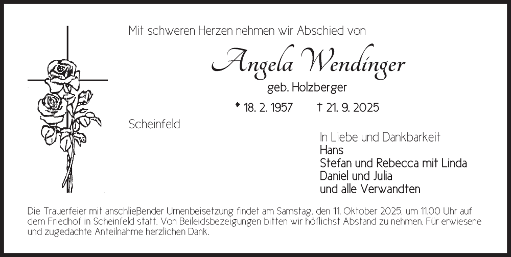 Hier finden Sie alle Traueranzeigen aus der Zeitung, die bisher für Angela Wendinger erschienen sind. Weitere Traueranzeigen, die in der Zeitung erscheinen, werden hier ebenfalls aufgelistet