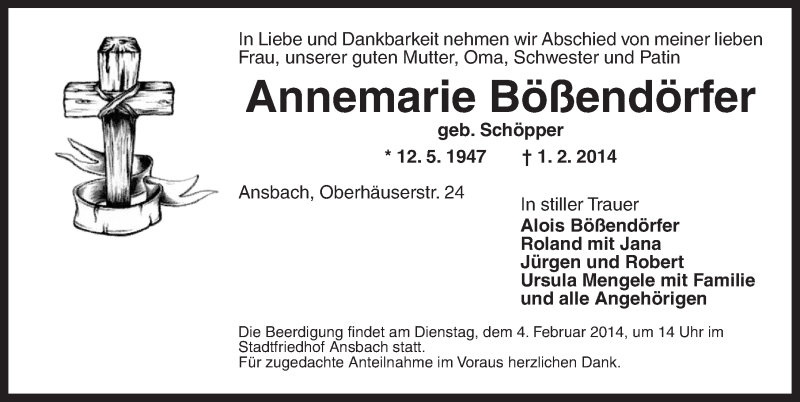 Hier finden Sie alle Traueranzeigen aus der Zeitung, die bisher für Annemarie Bößendörfer erschienen sind. Weitere Traueranzeigen, die in der Zeitung erscheinen, werden hier ebenfalls aufgelistet