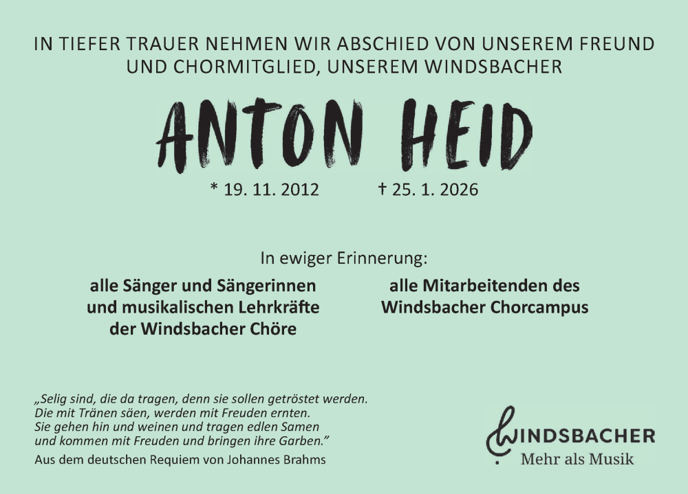 Hier finden Sie alle Traueranzeigen aus der Zeitung, die bisher für Anton Heid erschienen sind. Weitere Traueranzeigen, die in der Zeitung erscheinen, werden hier ebenfalls aufgelistet