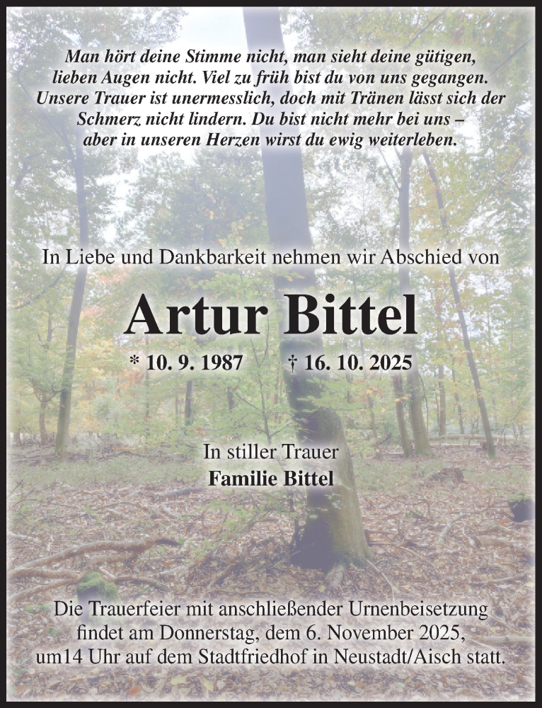 Hier finden Sie alle Traueranzeigen aus der Zeitung, die bisher für Artur Bittel erschienen sind. Weitere Traueranzeigen, die in der Zeitung erscheinen, werden hier ebenfalls aufgelistet