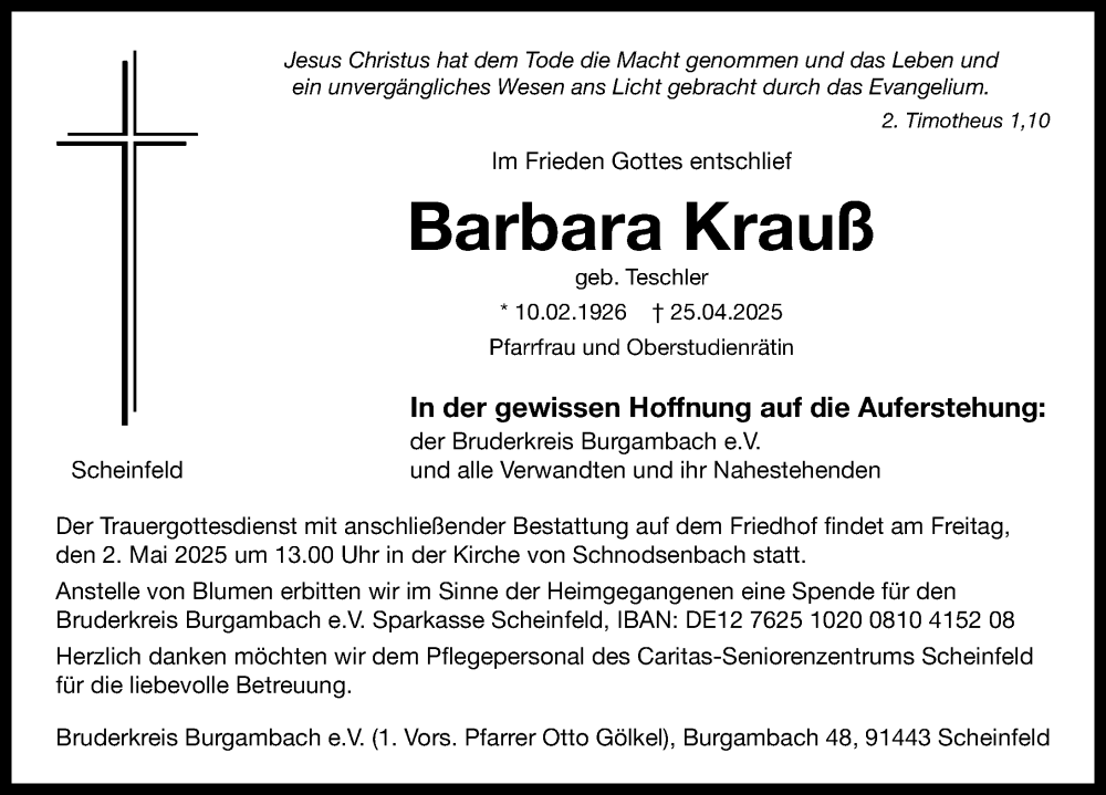 Hier finden Sie alle Traueranzeigen aus der Zeitung, die bisher für Barbara Krauß erschienen sind. Weitere Traueranzeigen, die in der Zeitung erscheinen, werden hier ebenfalls aufgelistet