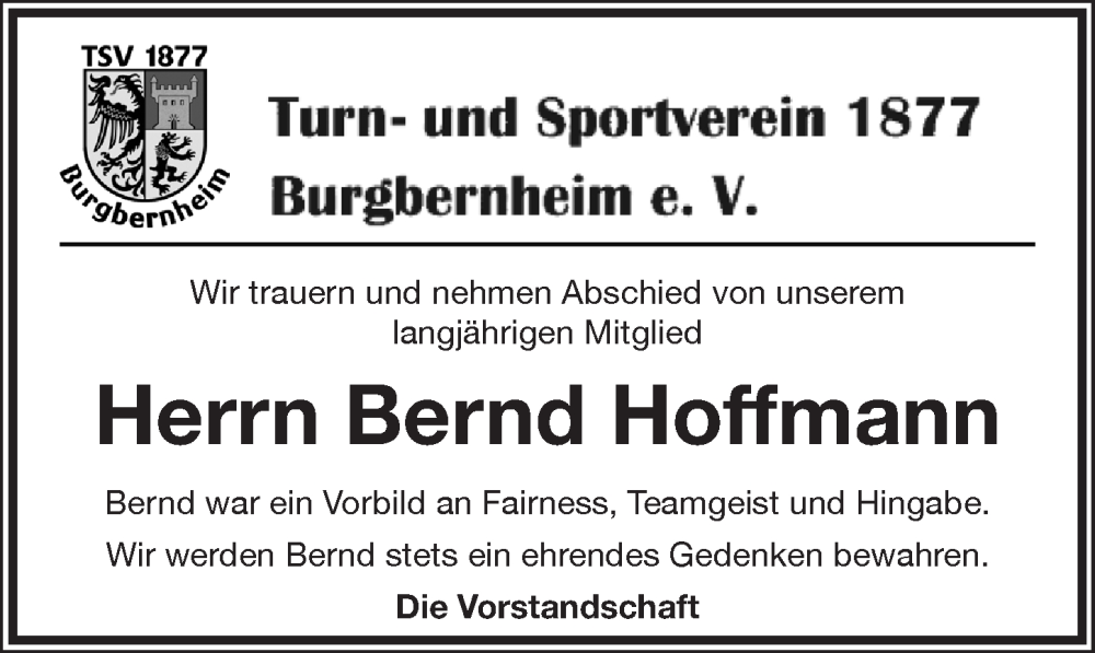 Hier finden Sie alle Traueranzeigen aus der Zeitung, die bisher für Bernd Hoffmann erschienen sind. Weitere Traueranzeigen, die in der Zeitung erscheinen, werden hier ebenfalls aufgelistet
