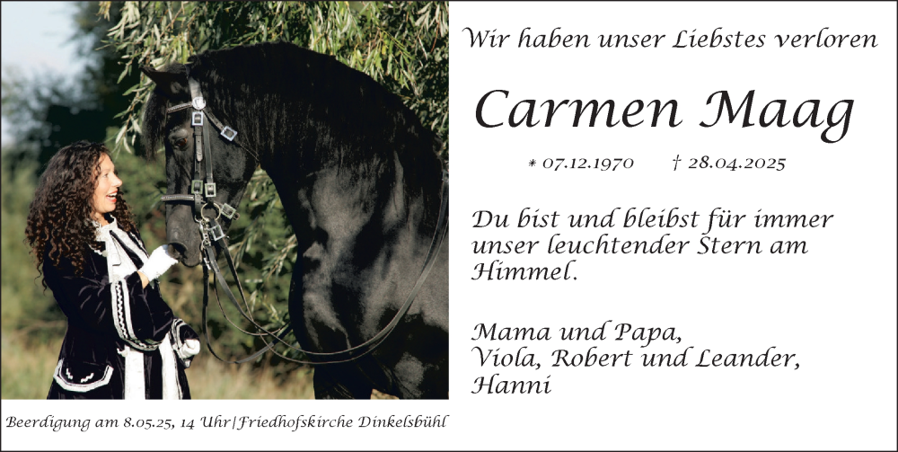 Hier finden Sie alle Traueranzeigen aus der Zeitung, die bisher für Carmen Maag erschienen sind. Weitere Traueranzeigen, die in der Zeitung erscheinen, werden hier ebenfalls aufgelistet