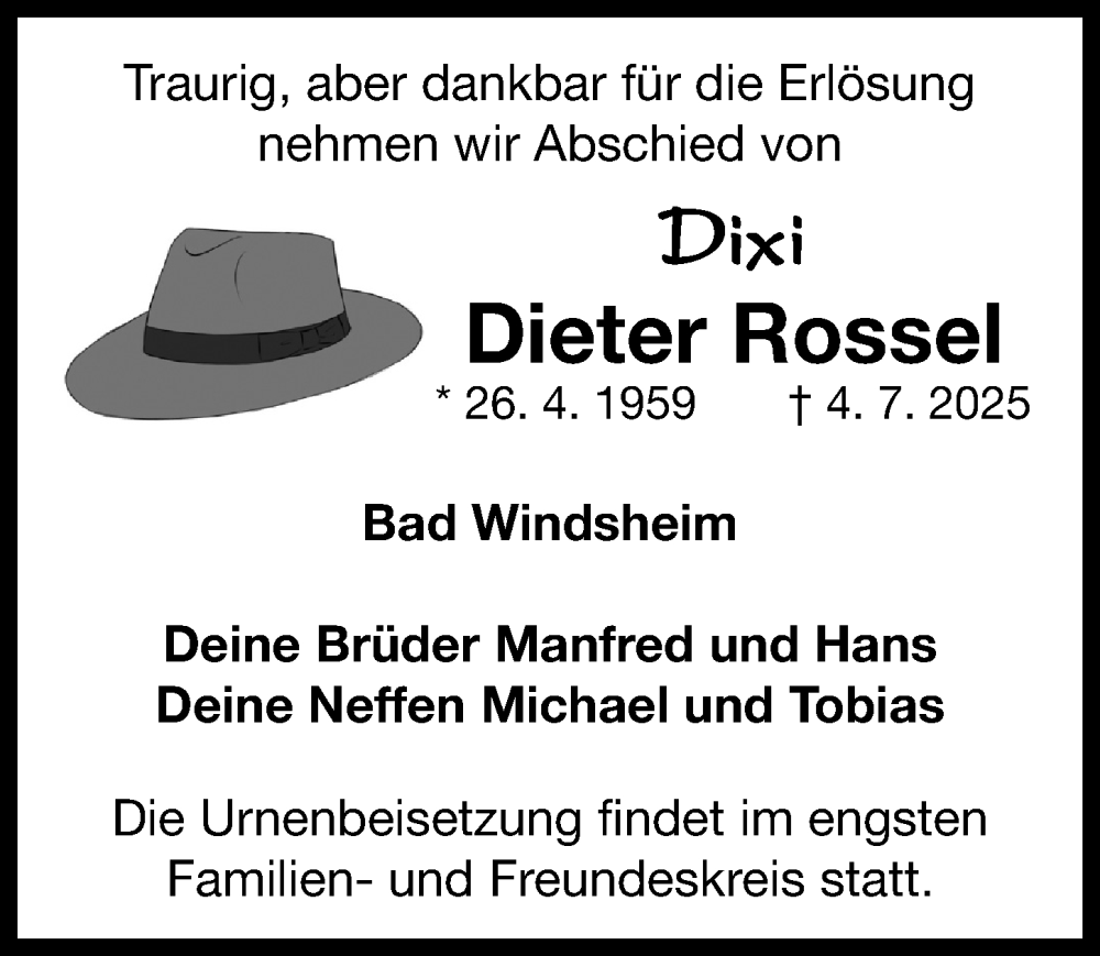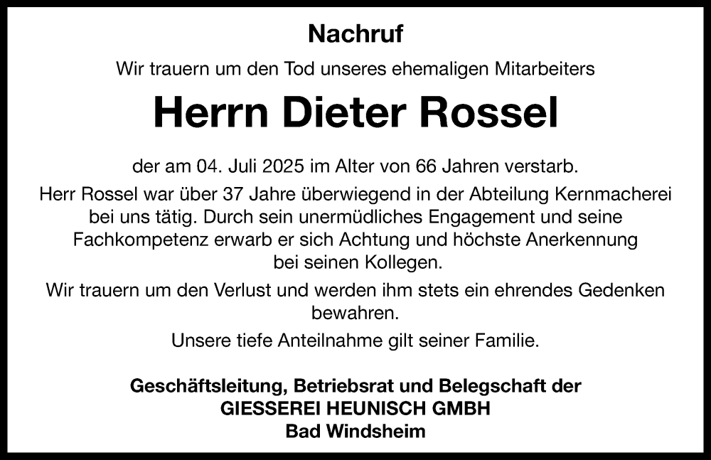 Hier finden Sie alle Traueranzeigen aus der Zeitung, die bisher für Dieter Rossel erschienen sind. Weitere Traueranzeigen, die in der Zeitung erscheinen, werden hier ebenfalls aufgelistet