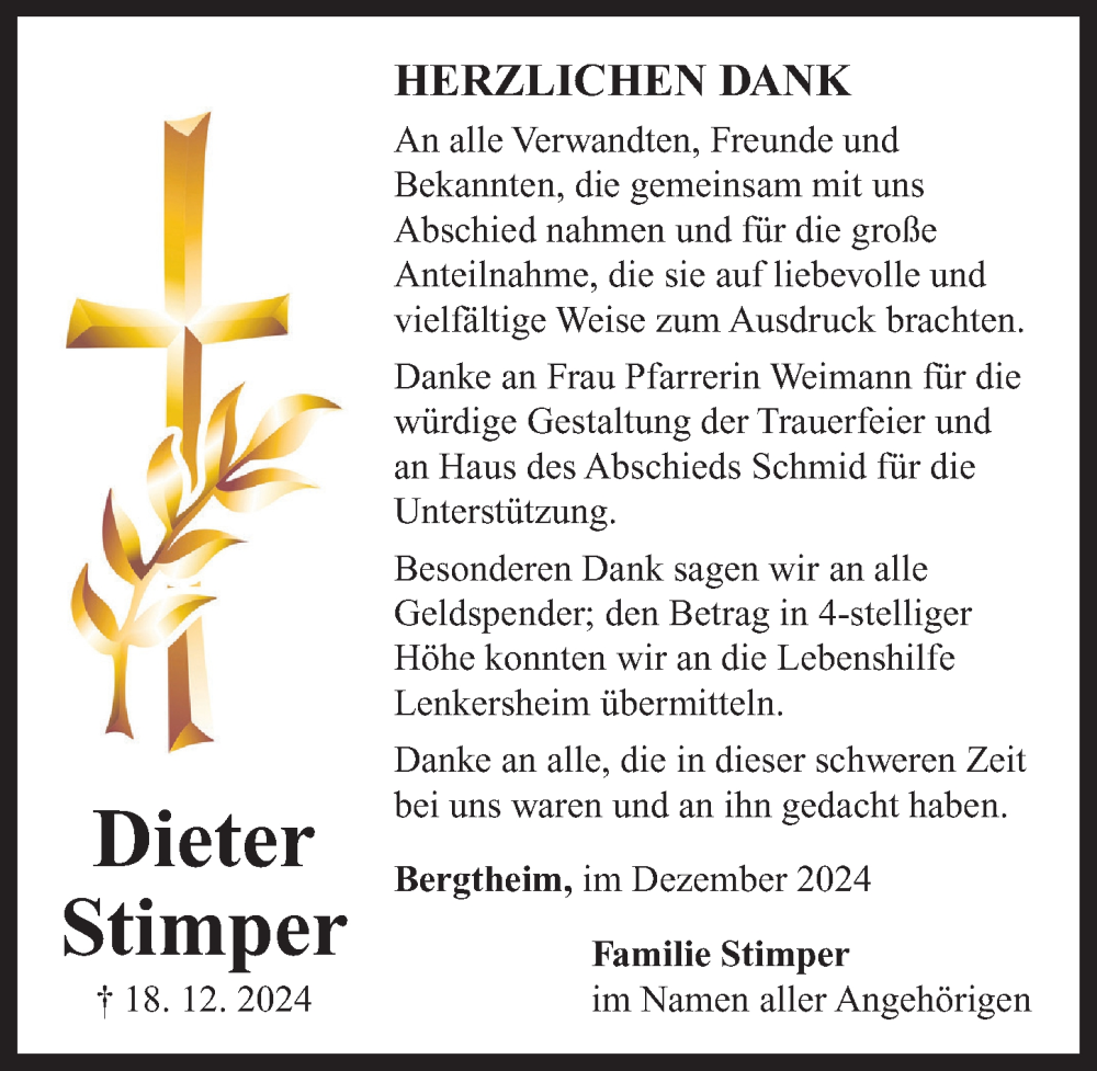 Hier finden Sie alle Traueranzeigen aus der Zeitung, die bisher für Dieter Stimper erschienen sind. Weitere Traueranzeigen, die in der Zeitung erscheinen, werden hier ebenfalls aufgelistet