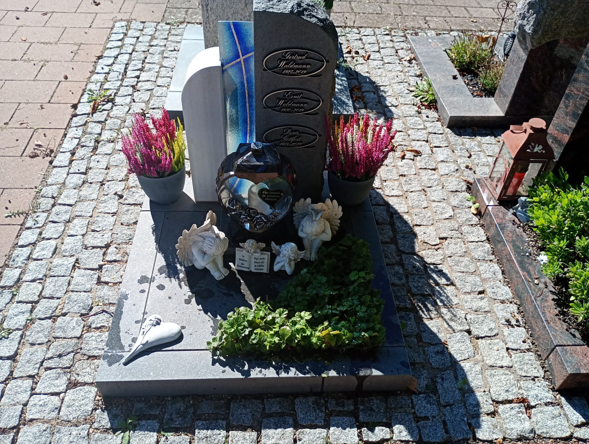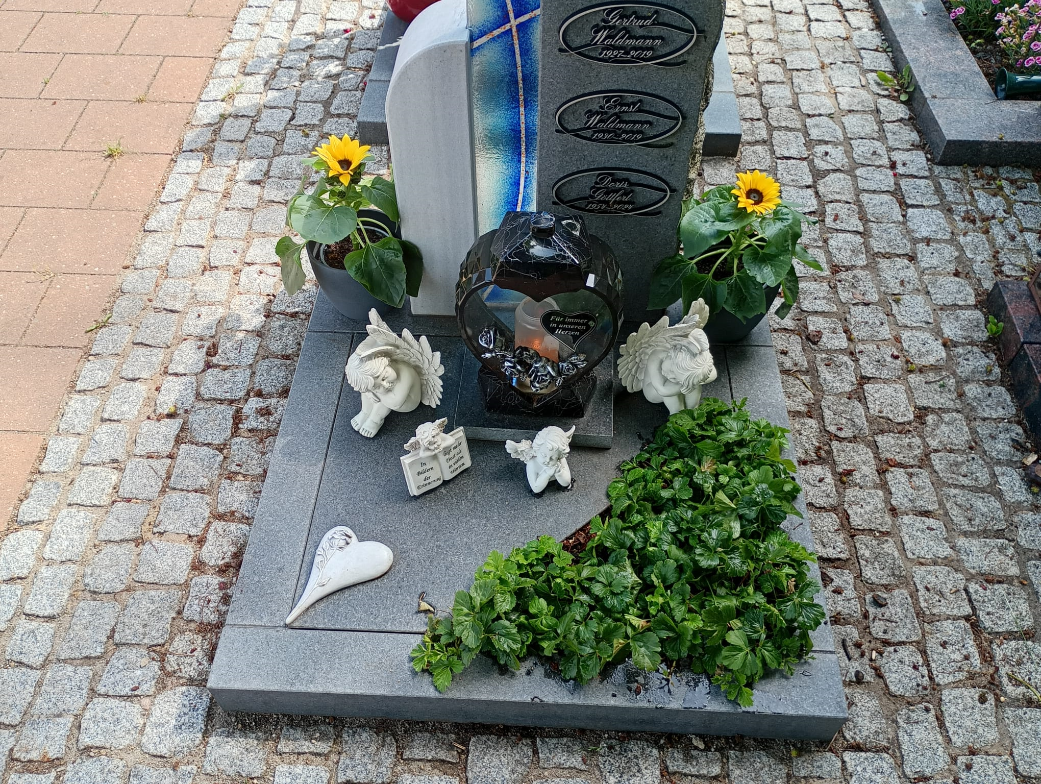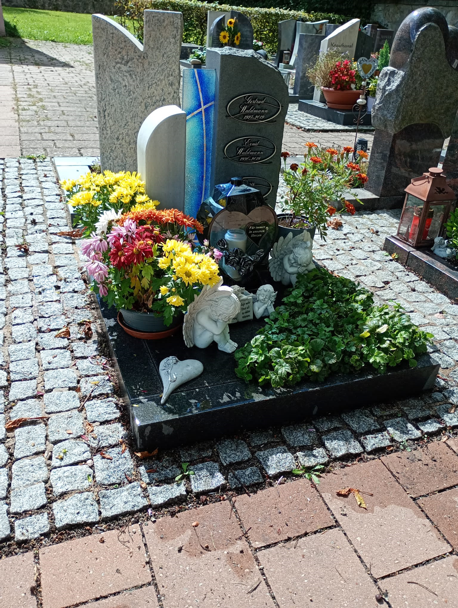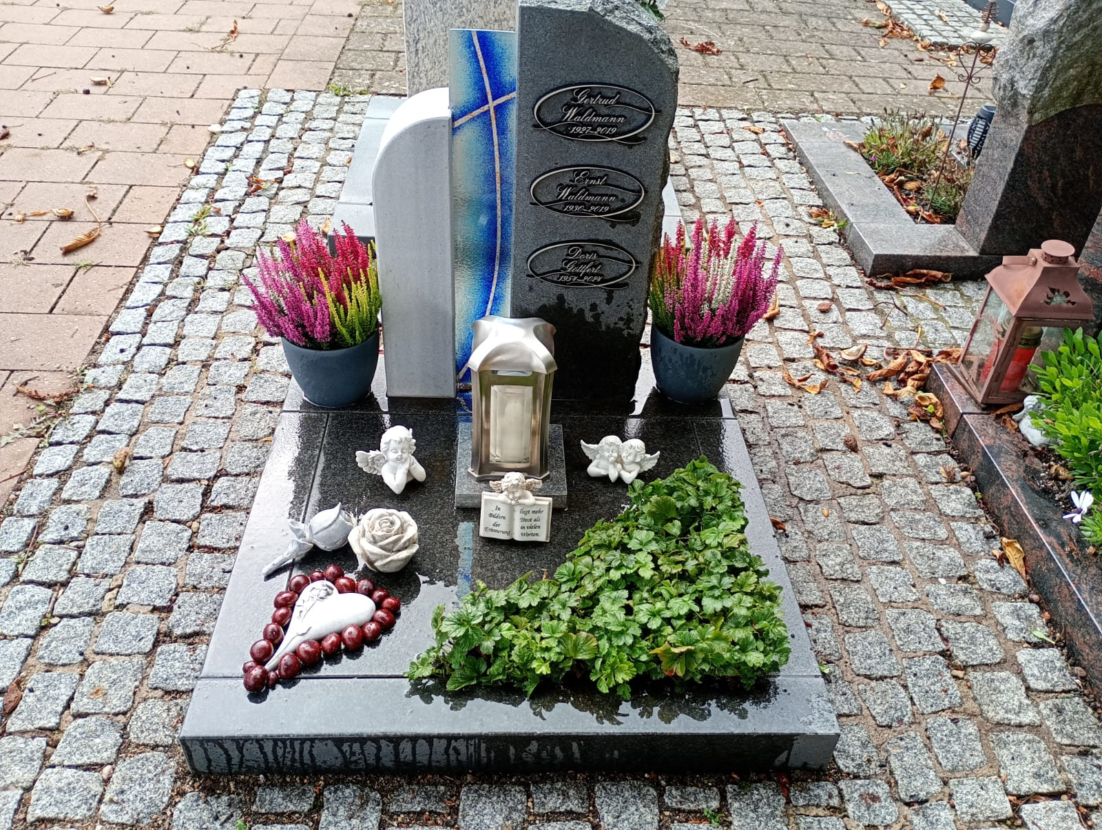 Für Alle die auf diesem Weg das Grab besuchen möchten. #1 09.11. #2 30.10. mit neuem Winterschmuck #3 04.10. Herz aus Kastanien Rosen, neue Grabkerze #4 28.09. die erste Kastanie, letztes mal herzförmige Grabkerze #5 19.09. Calluna Blumentöpfen #6 12.09. die Blumen halten sich noch tapfer #7 06.09. zum 71-ten Abends #8 Mittags gelbe Chrysanthemen, Topf/Strauß #9 18.06. für unsere liebe Doris - zwei Ihrer lieben Sonnenblumen