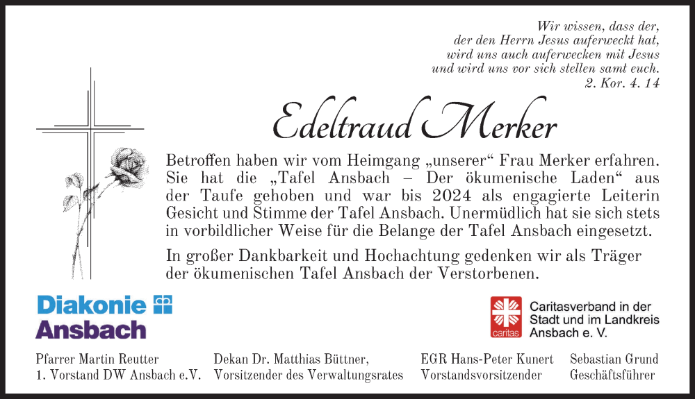 Hier finden Sie alle Traueranzeigen aus der Zeitung, die bisher für Edeltraud Merker erschienen sind. Weitere Traueranzeigen, die in der Zeitung erscheinen, werden hier ebenfalls aufgelistet
