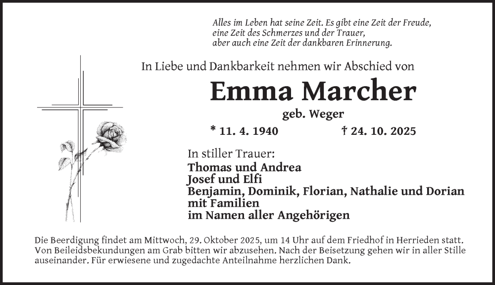 Hier finden Sie alle Traueranzeigen aus der Zeitung, die bisher für Emma Marcher erschienen sind. Weitere Traueranzeigen, die in der Zeitung erscheinen, werden hier ebenfalls aufgelistet