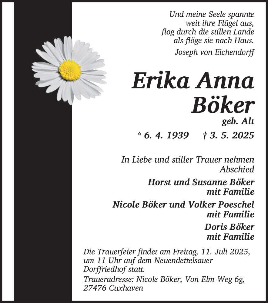 Hier finden Sie alle Traueranzeigen aus der Zeitung, die bisher für Erika Anna Böker erschienen sind. Weitere Traueranzeigen, die in der Zeitung erscheinen, werden hier ebenfalls aufgelistet