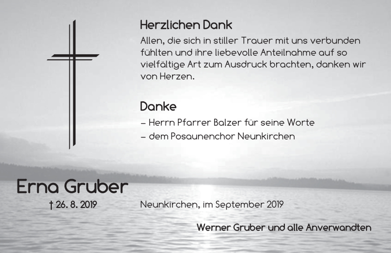 Hier finden Sie alle Traueranzeigen aus der Zeitung, die bisher für Erna Gruber erschienen sind. Weitere Traueranzeigen, die in der Zeitung erscheinen, werden hier ebenfalls aufgelistet