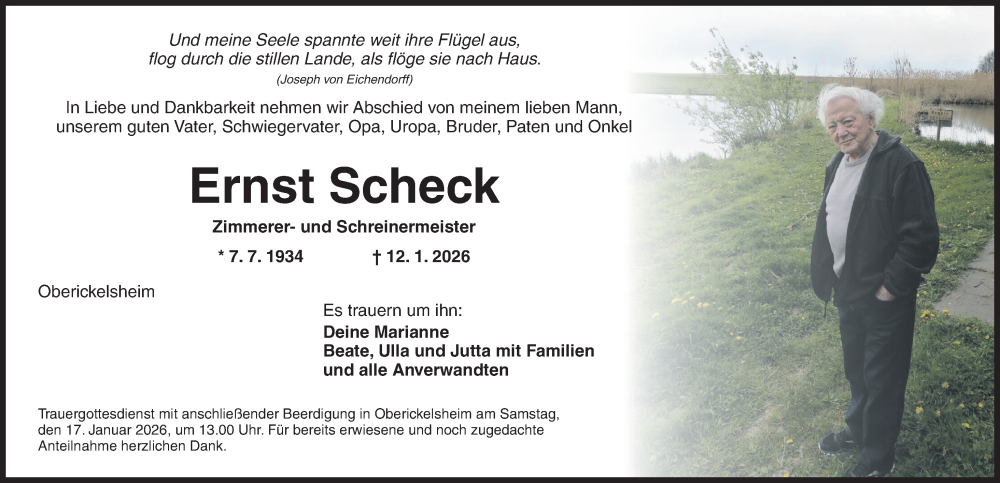 Hier finden Sie alle Traueranzeigen aus der Zeitung, die bisher für Ernst Scheck erschienen sind. Weitere Traueranzeigen, die in der Zeitung erscheinen, werden hier ebenfalls aufgelistet