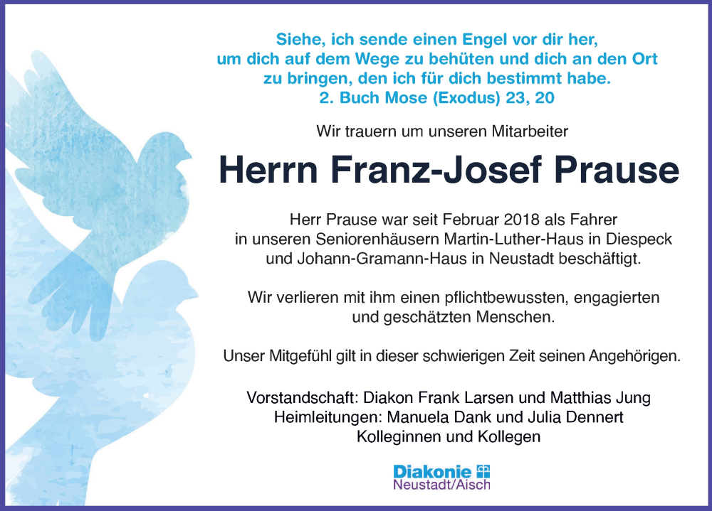 Hier finden Sie alle Traueranzeigen aus der Zeitung, die bisher für Franz-Josef Prause erschienen sind. Weitere Traueranzeigen, die in der Zeitung erscheinen, werden hier ebenfalls aufgelistet