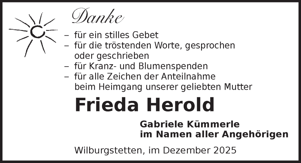 Hier finden Sie alle Traueranzeigen aus der Zeitung, die bisher für Frieda Herold erschienen sind. Weitere Traueranzeigen, die in der Zeitung erscheinen, werden hier ebenfalls aufgelistet