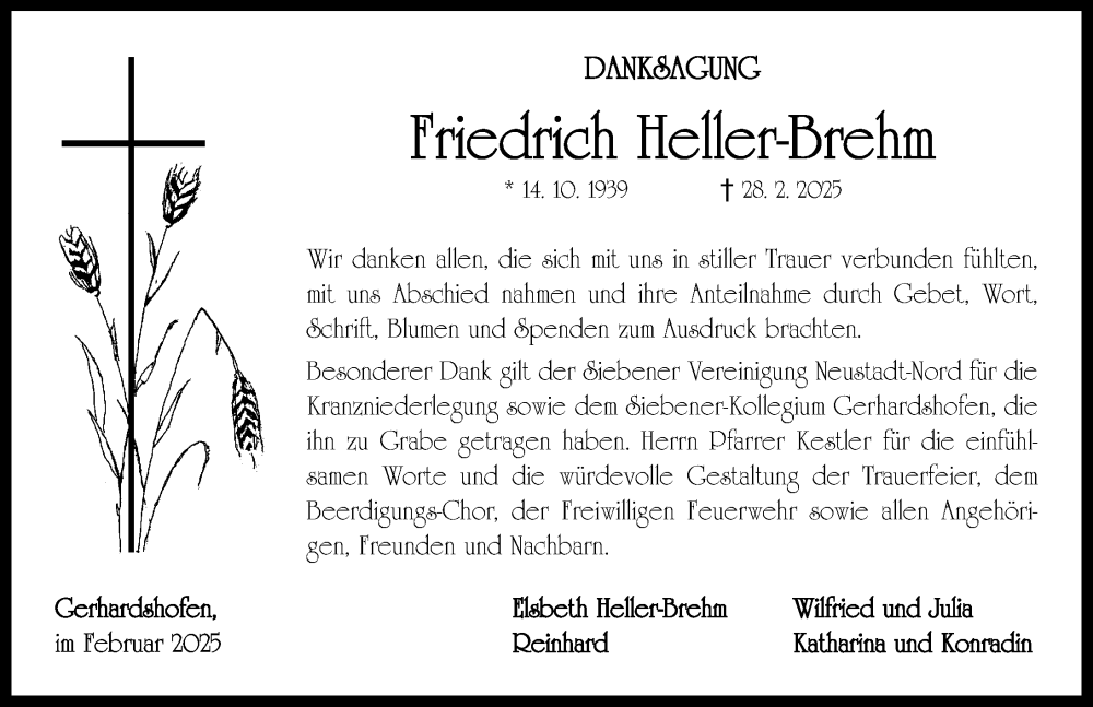 Hier finden Sie alle Traueranzeigen aus der Zeitung, die bisher für Friedrich Heller-Brehm erschienen sind. Weitere Traueranzeigen, die in der Zeitung erscheinen, werden hier ebenfalls aufgelistet