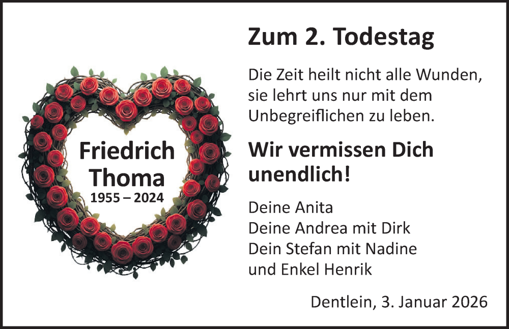 Hier finden Sie alle Traueranzeigen aus der Zeitung, die bisher für Friedrich Thoma erschienen sind. Weitere Traueranzeigen, die in der Zeitung erscheinen, werden hier ebenfalls aufgelistet