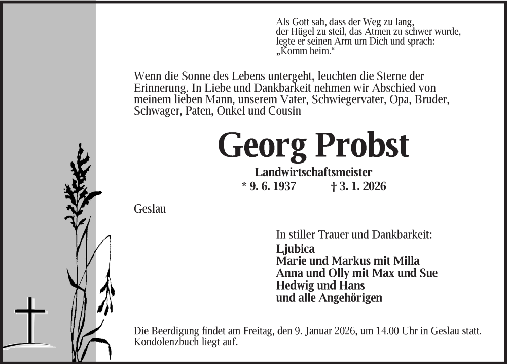 Hier finden Sie alle Traueranzeigen aus der Zeitung, die bisher für Georg Probst erschienen sind. Weitere Traueranzeigen, die in der Zeitung erscheinen, werden hier ebenfalls aufgelistet
