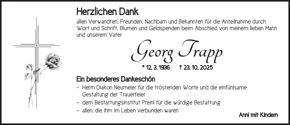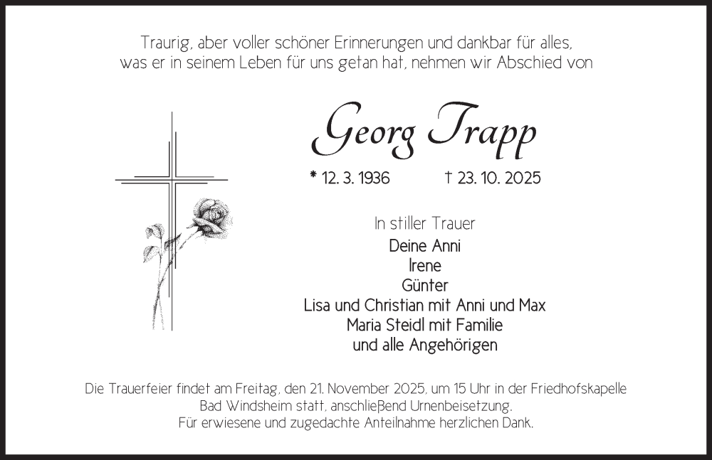 Hier finden Sie alle Traueranzeigen aus der Zeitung, die bisher für Georg Trapp erschienen sind. Weitere Traueranzeigen, die in der Zeitung erscheinen, werden hier ebenfalls aufgelistet