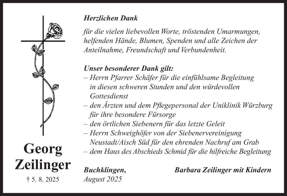 Hier finden Sie alle Traueranzeigen aus der Zeitung, die bisher für Georg Zeilinger erschienen sind. Weitere Traueranzeigen, die in der Zeitung erscheinen, werden hier ebenfalls aufgelistet