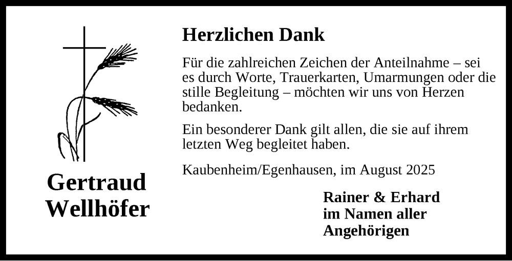 Hier finden Sie alle Traueranzeigen aus der Zeitung, die bisher für Gertraud Wellhöfer erschienen sind. Weitere Traueranzeigen, die in der Zeitung erscheinen, werden hier ebenfalls aufgelistet