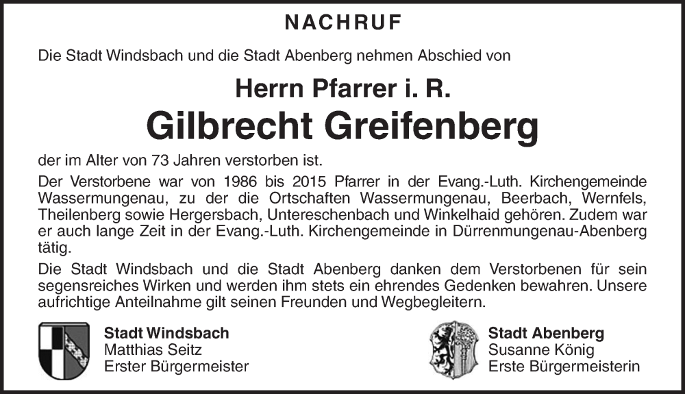 Hier finden Sie alle Traueranzeigen aus der Zeitung, die bisher für Gilbrecht Greifenberg erschienen sind. Weitere Traueranzeigen, die in der Zeitung erscheinen, werden hier ebenfalls aufgelistet