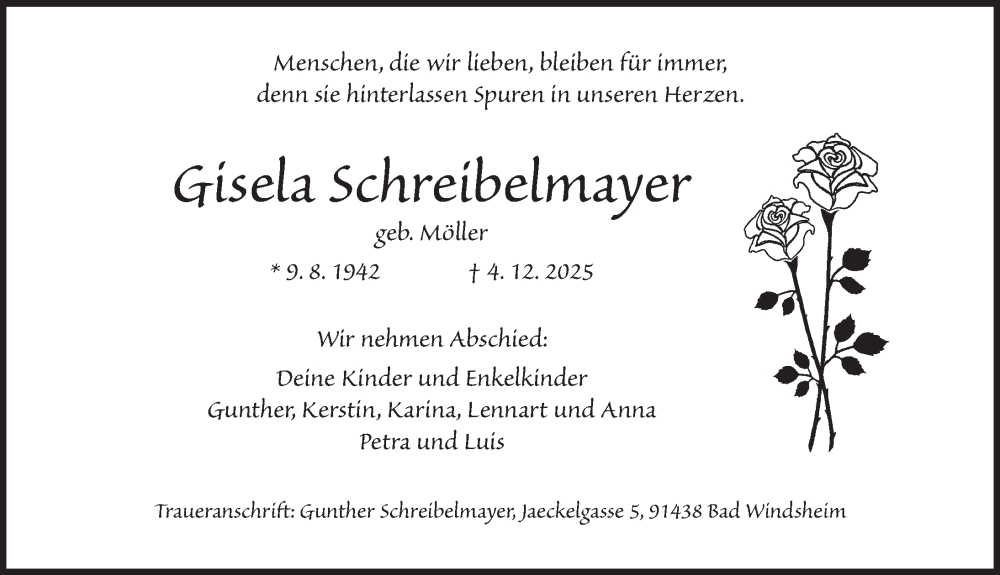 Hier finden Sie alle Traueranzeigen aus der Zeitung, die bisher für Gisela Schreibelmayer erschienen sind. Weitere Traueranzeigen, die in der Zeitung erscheinen, werden hier ebenfalls aufgelistet