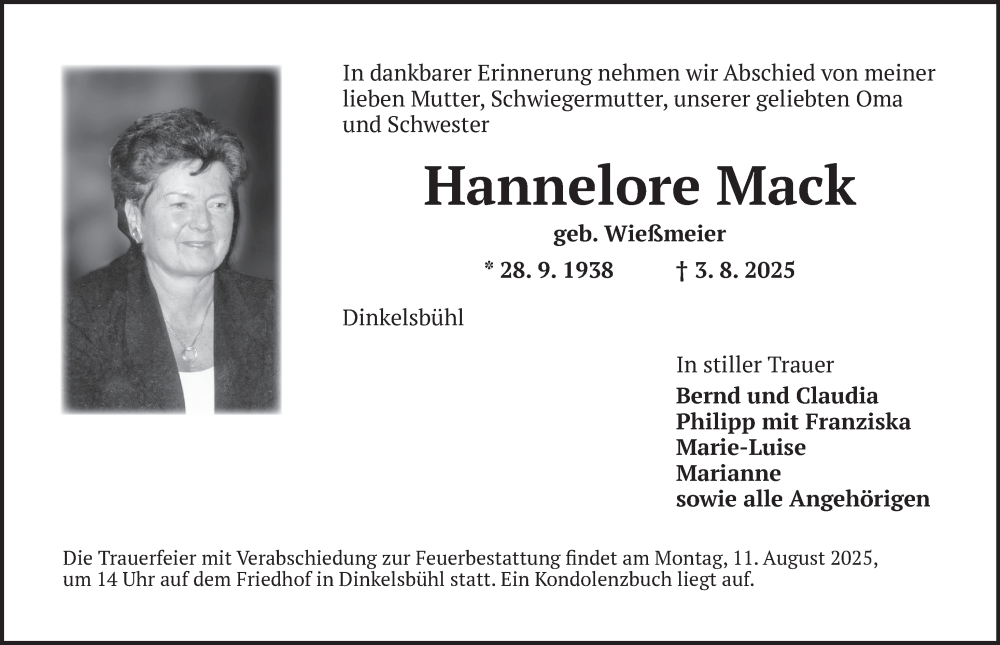 Hier finden Sie alle Traueranzeigen aus der Zeitung, die bisher für Hannelore Mack erschienen sind. Weitere Traueranzeigen, die in der Zeitung erscheinen, werden hier ebenfalls aufgelistet
