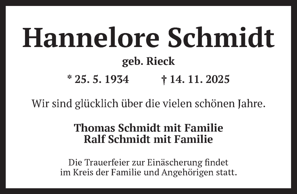 Hier finden Sie alle Traueranzeigen aus der Zeitung, die bisher für Hannelore Schmidt erschienen sind. Weitere Traueranzeigen, die in der Zeitung erscheinen, werden hier ebenfalls aufgelistet