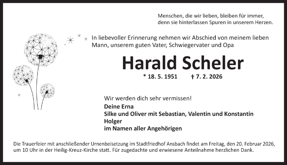 Hier finden Sie alle Traueranzeigen aus der Zeitung, die bisher für Harald Scheler erschienen sind. Weitere Traueranzeigen, die in der Zeitung erscheinen, werden hier ebenfalls aufgelistet
