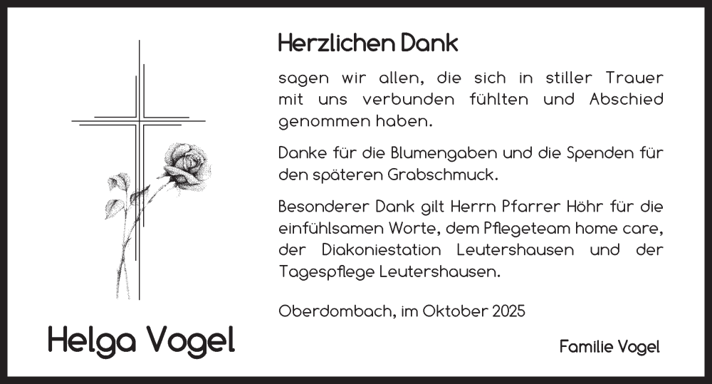 Hier finden Sie alle Traueranzeigen aus der Zeitung, die bisher für Helga Vogel erschienen sind. Weitere Traueranzeigen, die in der Zeitung erscheinen, werden hier ebenfalls aufgelistet