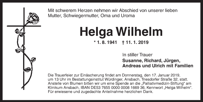 Hier finden Sie alle Traueranzeigen aus der Zeitung, die bisher für Helga Wilhelm erschienen sind. Weitere Traueranzeigen, die in der Zeitung erscheinen, werden hier ebenfalls aufgelistet