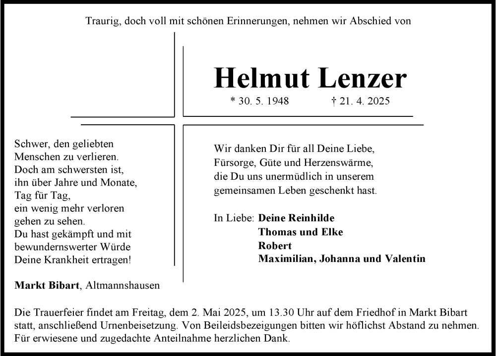 Hier finden Sie alle Traueranzeigen aus der Zeitung, die bisher für Helmut Lenzer erschienen sind. Weitere Traueranzeigen, die in der Zeitung erscheinen, werden hier ebenfalls aufgelistet