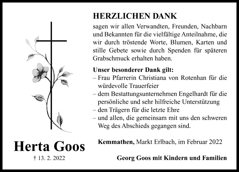 Hier finden Sie alle Traueranzeigen aus der Zeitung, die bisher für Herta Goos erschienen sind. Weitere Traueranzeigen, die in der Zeitung erscheinen, werden hier ebenfalls aufgelistet