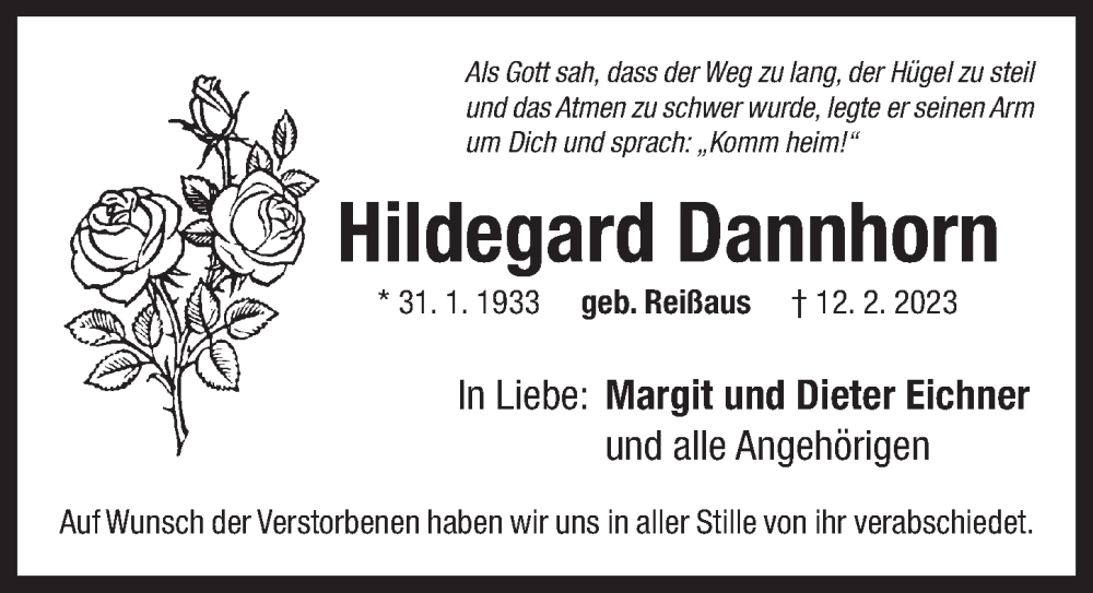 Hier finden Sie alle Traueranzeigen aus der Zeitung, die bisher für Hildegard Dannhorn erschienen sind. Weitere Traueranzeigen, die in der Zeitung erscheinen, werden hier ebenfalls aufgelistet