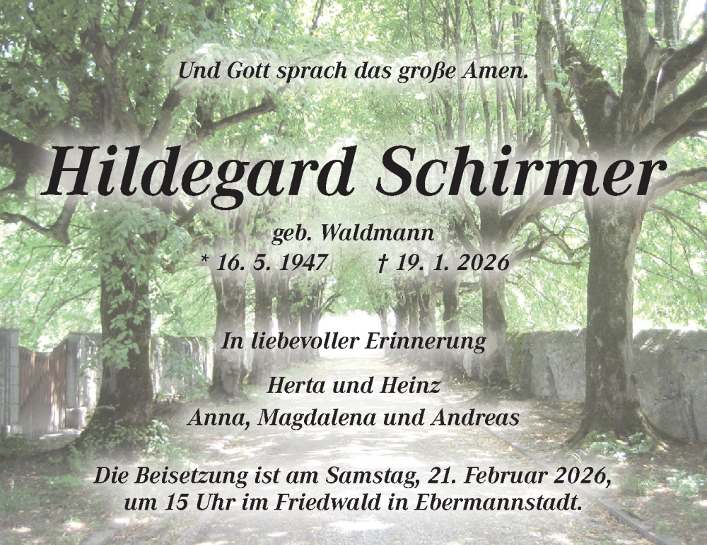 Hier finden Sie alle Traueranzeigen aus der Zeitung, die bisher für Hildegard Schirmer erschienen sind. Weitere Traueranzeigen, die in der Zeitung erscheinen, werden hier ebenfalls aufgelistet