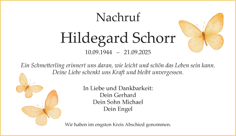 Hier finden Sie alle Traueranzeigen aus der Zeitung, die bisher für Hildegard Schorr erschienen sind. Weitere Traueranzeigen, die in der Zeitung erscheinen, werden hier ebenfalls aufgelistet