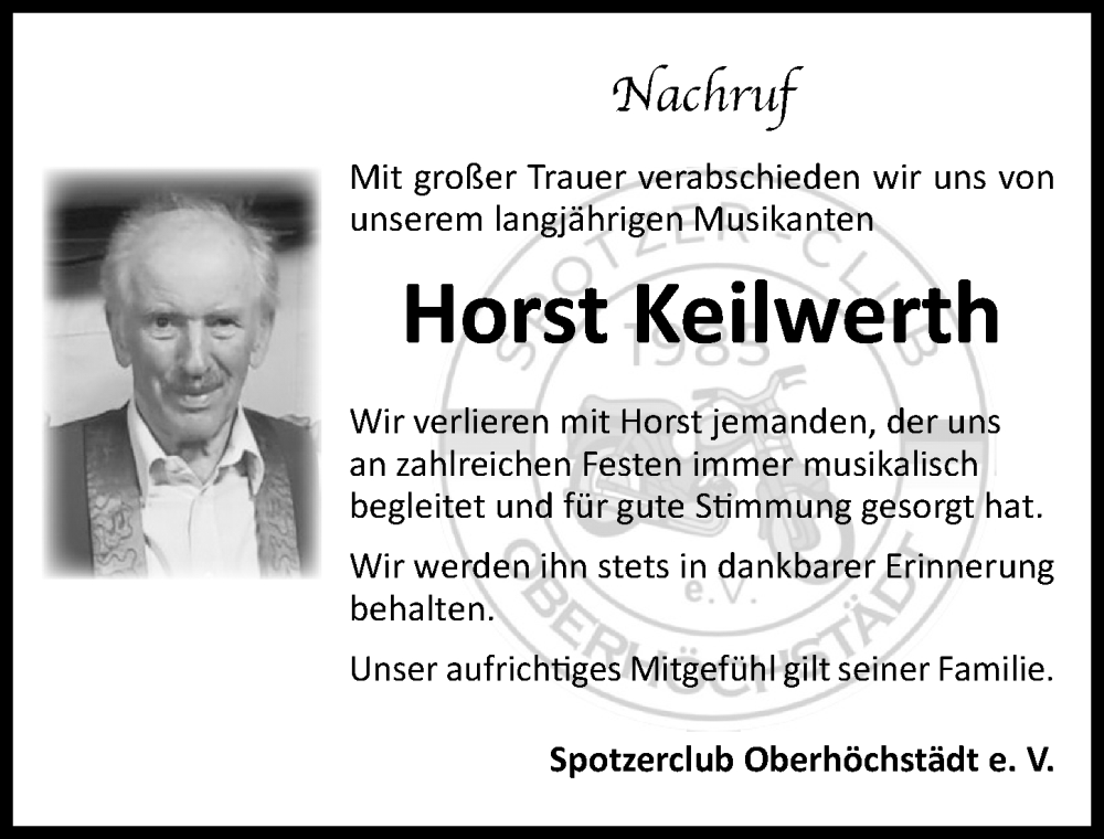 Hier finden Sie alle Traueranzeigen aus der Zeitung, die bisher für Horst Keilwerth erschienen sind. Weitere Traueranzeigen, die in der Zeitung erscheinen, werden hier ebenfalls aufgelistet