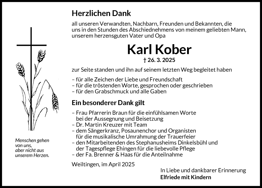 Hier finden Sie alle Traueranzeigen aus der Zeitung, die bisher für Karl Kober erschienen sind. Weitere Traueranzeigen, die in der Zeitung erscheinen, werden hier ebenfalls aufgelistet