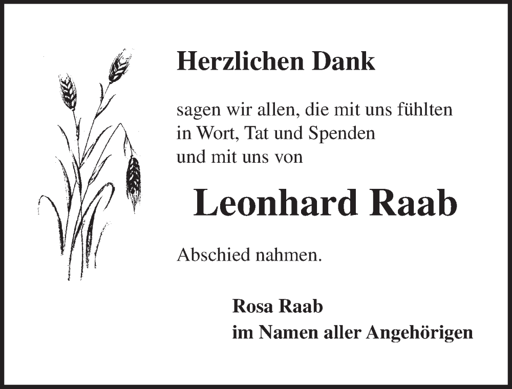 Hier finden Sie alle Traueranzeigen aus der Zeitung, die bisher für Leonhard Raab erschienen sind. Weitere Traueranzeigen, die in der Zeitung erscheinen, werden hier ebenfalls aufgelistet