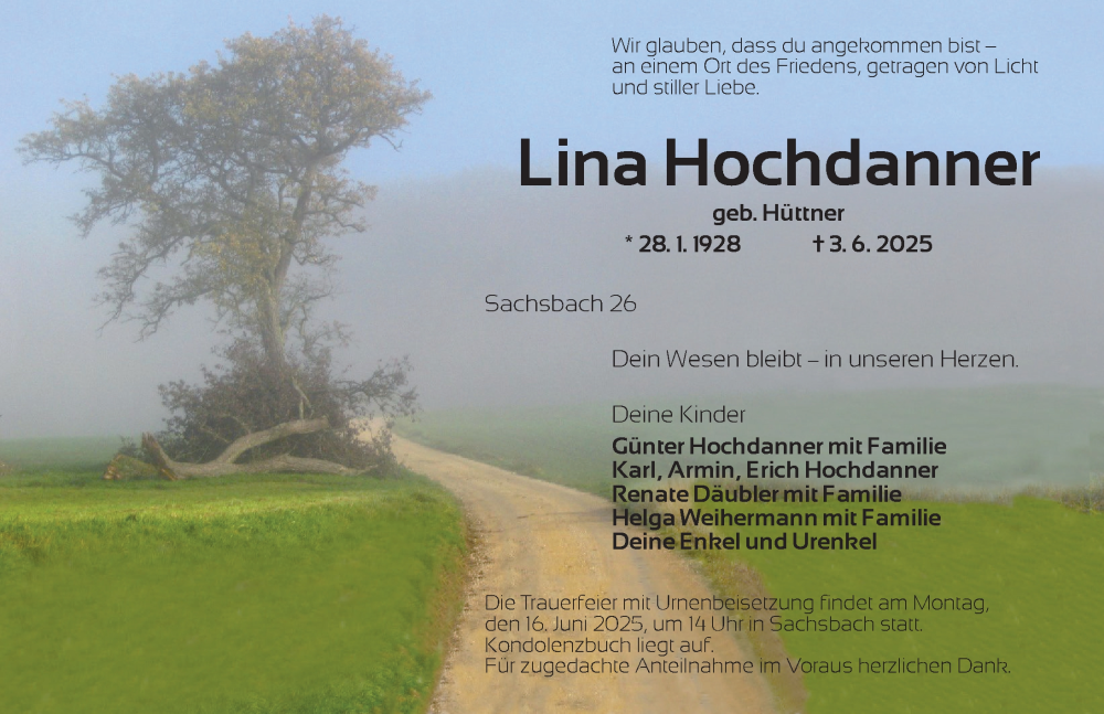 Hier finden Sie alle Traueranzeigen aus der Zeitung, die bisher für Lina Hochdanner erschienen sind. Weitere Traueranzeigen, die in der Zeitung erscheinen, werden hier ebenfalls aufgelistet