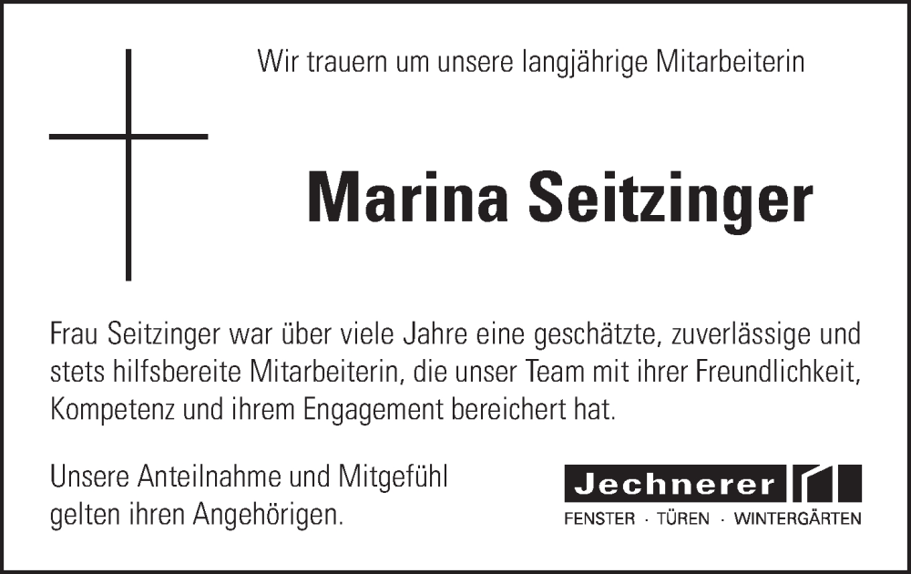 Hier finden Sie alle Traueranzeigen aus der Zeitung, die bisher für Marina Seitzinger erschienen sind. Weitere Traueranzeigen, die in der Zeitung erscheinen, werden hier ebenfalls aufgelistet