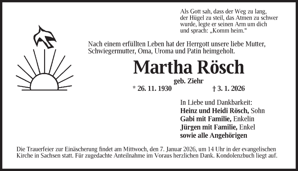 Hier finden Sie alle Traueranzeigen aus der Zeitung, die bisher für Martha Rösch erschienen sind. Weitere Traueranzeigen, die in der Zeitung erscheinen, werden hier ebenfalls aufgelistet