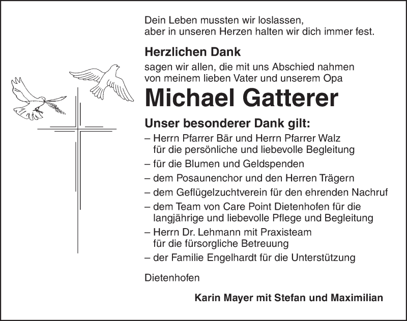 Hier finden Sie alle Traueranzeigen aus der Zeitung, die bisher für Michael Gatterer erschienen sind. Weitere Traueranzeigen, die in der Zeitung erscheinen, werden hier ebenfalls aufgelistet