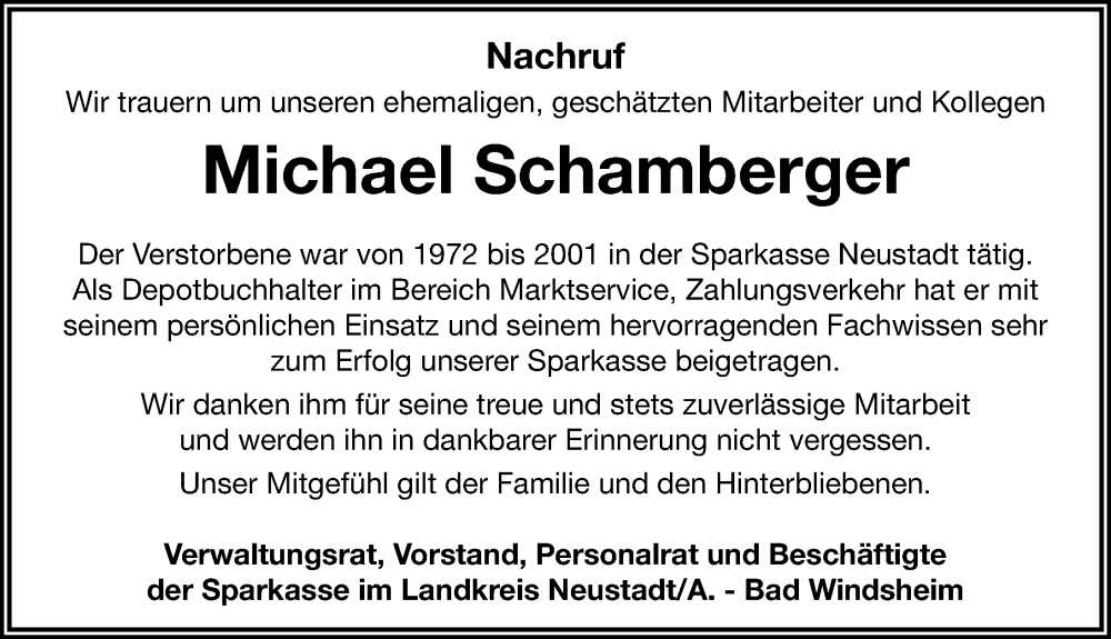 Hier finden Sie alle Traueranzeigen aus der Zeitung, die bisher für Michael Schamberger erschienen sind. Weitere Traueranzeigen, die in der Zeitung erscheinen, werden hier ebenfalls aufgelistet