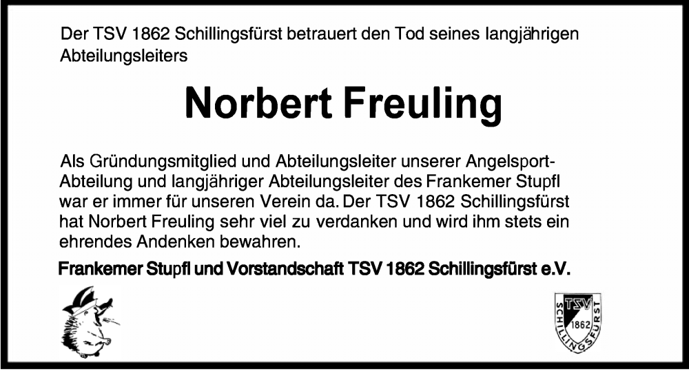 Hier finden Sie alle Traueranzeigen aus der Zeitung, die bisher für Norbert Freuling erschienen sind. Weitere Traueranzeigen, die in der Zeitung erscheinen, werden hier ebenfalls aufgelistet
