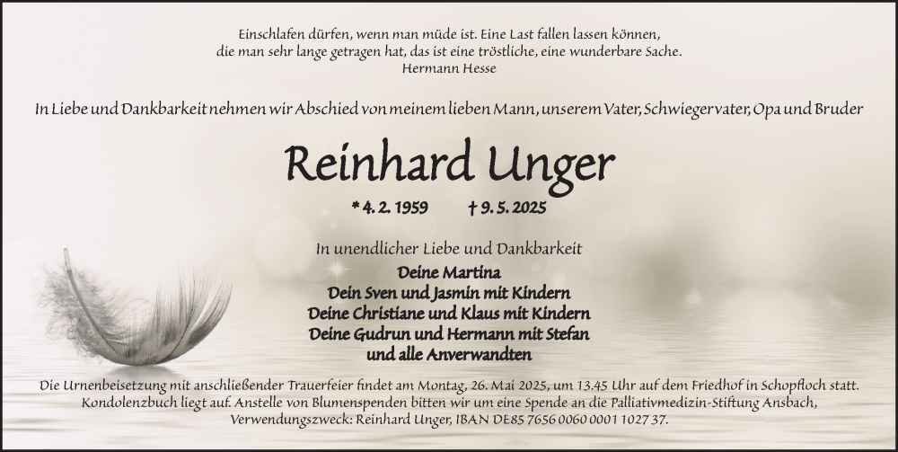 Hier finden Sie alle Traueranzeigen aus der Zeitung, die bisher für Reinhard Unger erschienen sind. Weitere Traueranzeigen, die in der Zeitung erscheinen, werden hier ebenfalls aufgelistet