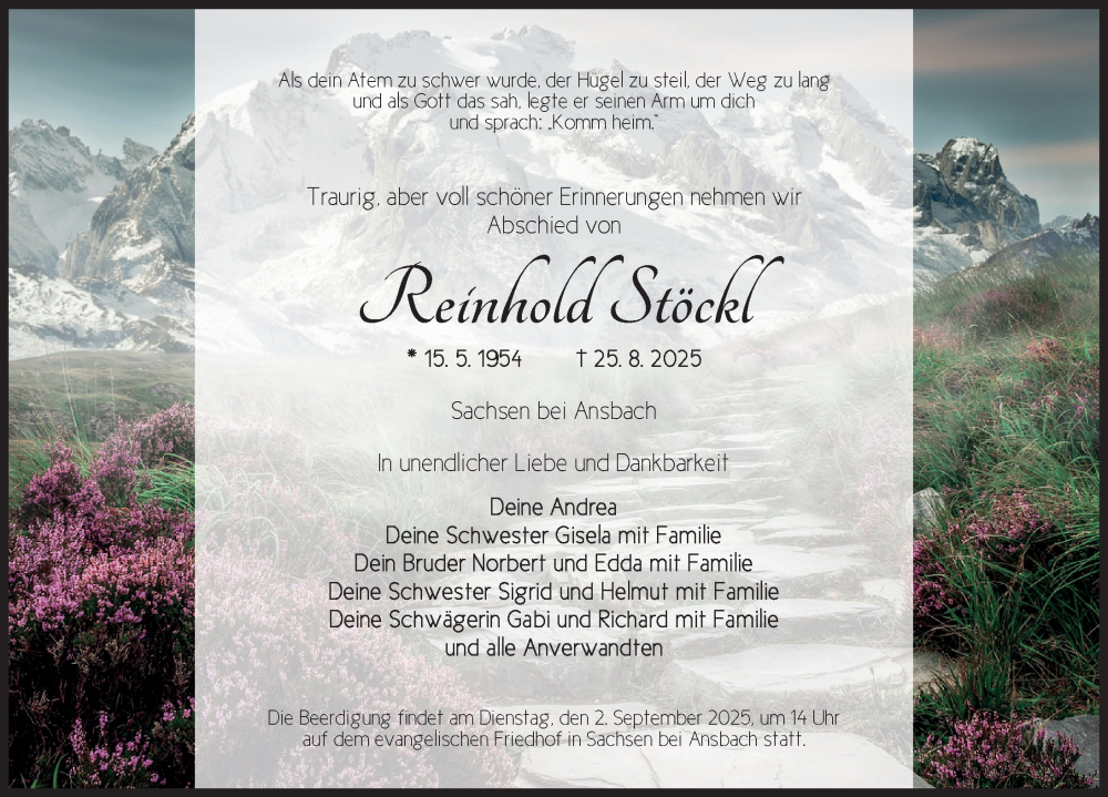 Hier finden Sie alle Traueranzeigen aus der Zeitung, die bisher für Reinhold Stöckl erschienen sind. Weitere Traueranzeigen, die in der Zeitung erscheinen, werden hier ebenfalls aufgelistet