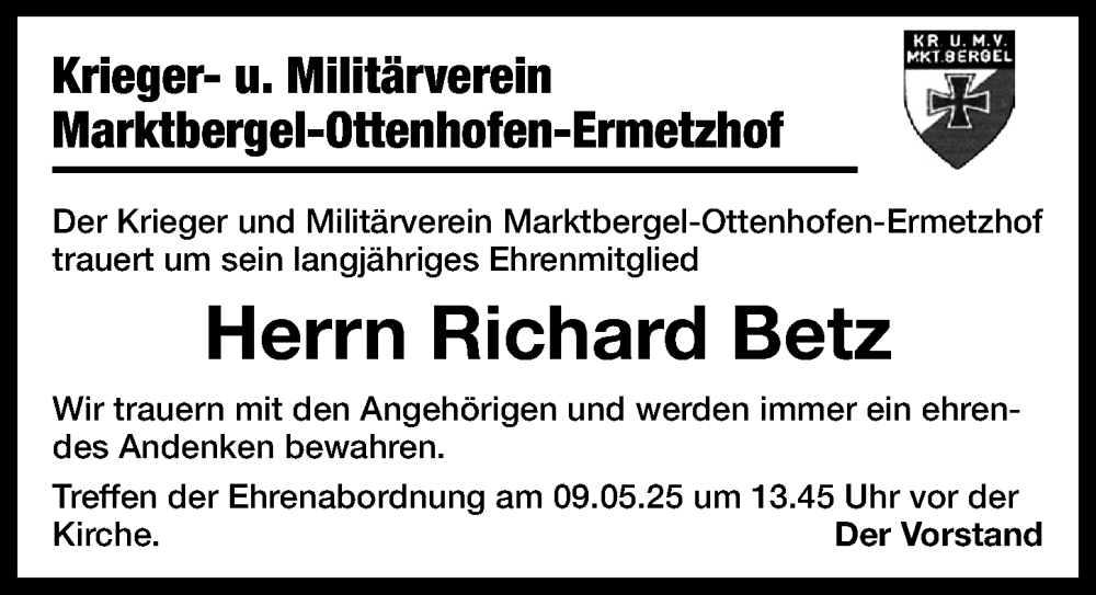 Hier finden Sie alle Traueranzeigen aus der Zeitung, die bisher für Richard Betz erschienen sind. Weitere Traueranzeigen, die in der Zeitung erscheinen, werden hier ebenfalls aufgelistet