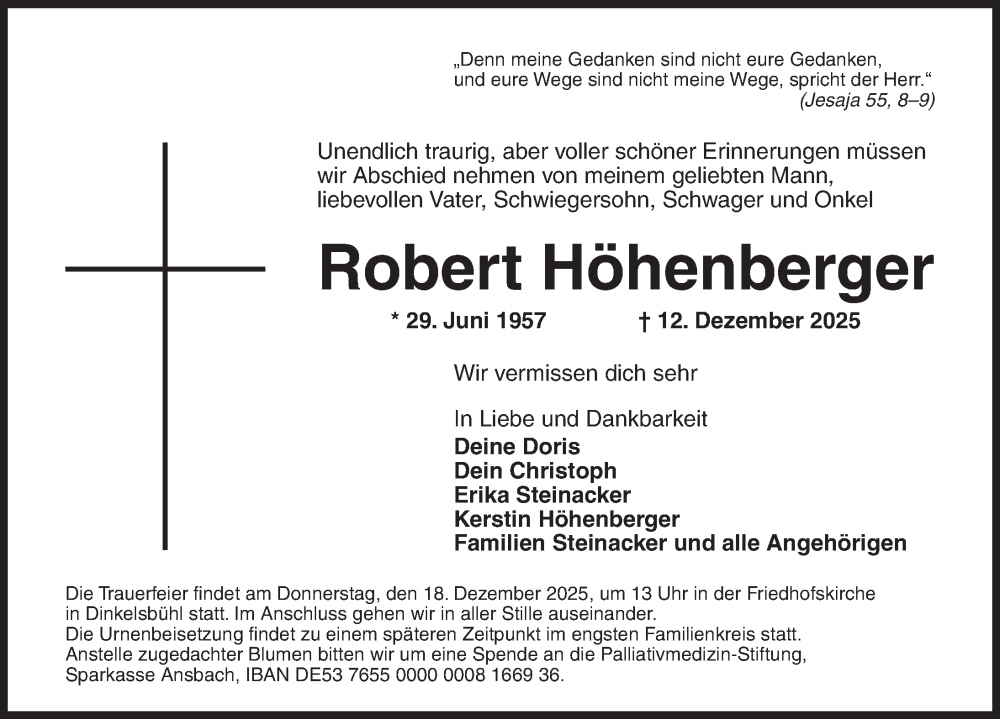 Hier finden Sie alle Traueranzeigen aus der Zeitung, die bisher für Robert Höhenberger erschienen sind. Weitere Traueranzeigen, die in der Zeitung erscheinen, werden hier ebenfalls aufgelistet