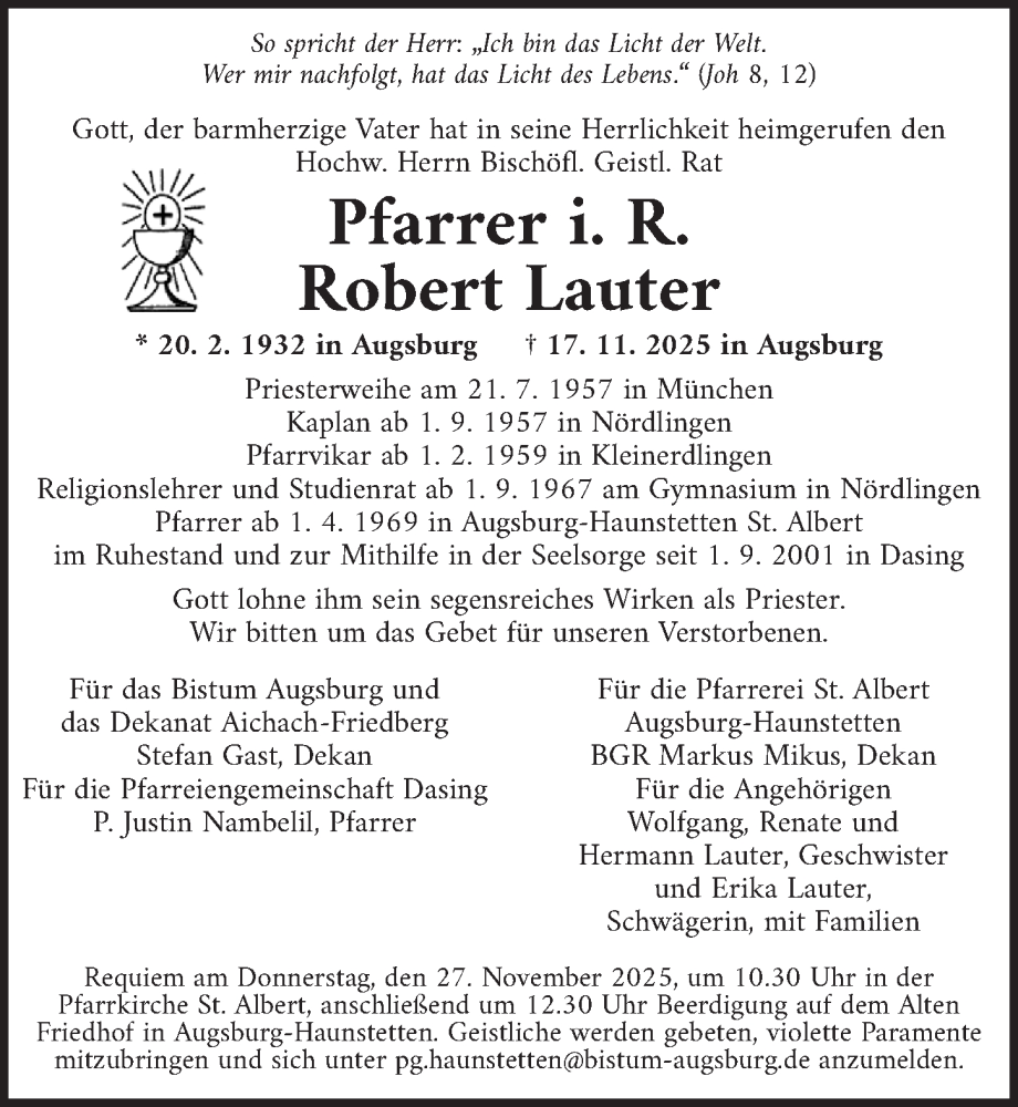 Hier finden Sie alle Traueranzeigen aus der Zeitung, die bisher für Robert Lauter erschienen sind. Weitere Traueranzeigen, die in der Zeitung erscheinen, werden hier ebenfalls aufgelistet